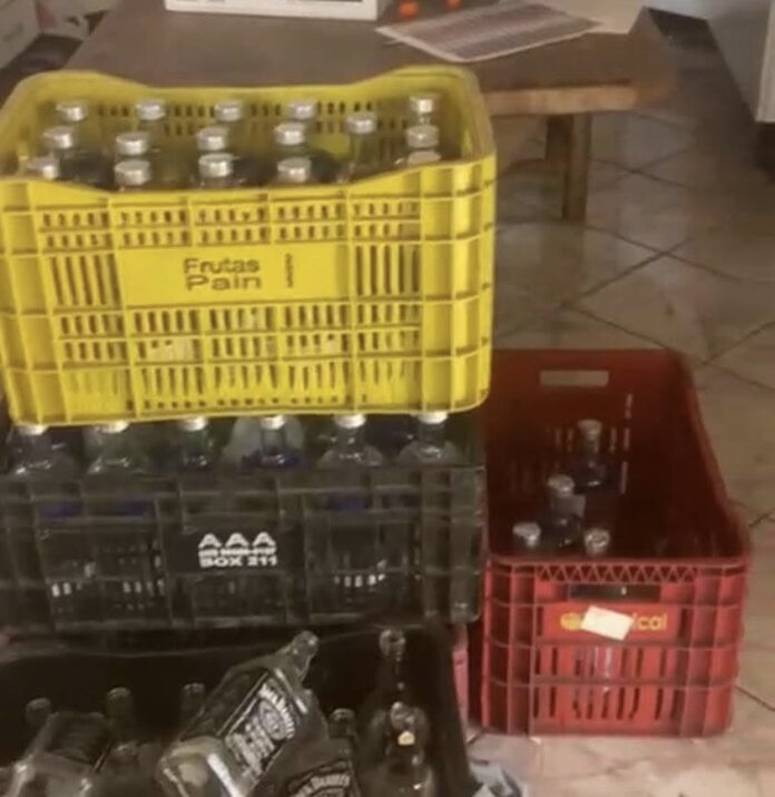 Enquanto verificavam a área externa, os policiais visualizaram na chácara vizinha grande quantidade de garrafas e embalagens de bebidas, o que levantou suspeita. O portão da propriedade estava aberto e, diante da fundada suspeita de fabricação clandestina, a equipe realizou incursão no imóvel.