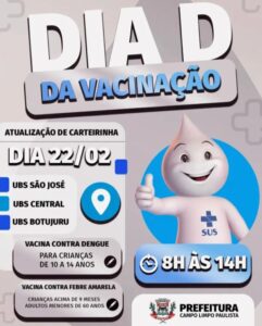 da Redação – Portal Folha A Prefeitura de Campo Limpo Paulista promoverá, no dia 22 de fevereiro, uma mobilização especial de vacinação. O “Dia D”...