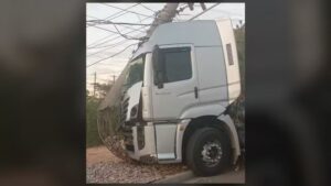 Caminhão colide com poste e mobiliza equipes da CPFL em Jundiaí