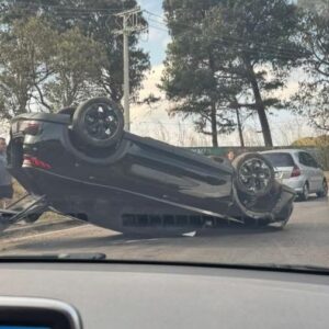 Veículo capota na entrada do Engordadouro e causa lentidão no trânsito
